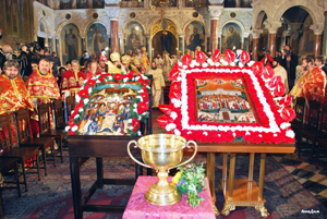 По окончанию Литургии были совершены благодарственный молебен и освящение икон новопрославленных святых, сообщает представительство Патриарха Московского и всея Руси при Патриархе Болгарском.