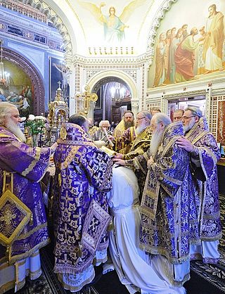Его Святейшеству сослужили: митрополит Крутицкий и Коломенский Ювеналий; митрополит Саранский и Мордовский Варсонофий, управляющий делами Московской Патриархии; архиепископ Клинский Лонгин, представитель Русской Православной Церкви в Германии; архиепископ Истринский Арсений; архиепископ Новосибирский и Бердский Тихон; архиепископ Верейский Евгений, председатель Учебного комитета Русской Православной Церкви; архиепископ Хабаровский и Приамурский Игнатий; архиепископ Егорьевский Марк, руководитель Управления Московской Патриархии по зарубежным учреждениям; епископ Зарайский Меркурий, председатель Отдела религиозного образования и катехизации Русской Православной Церкви; епископ Дмитровский Александр; епископ Солнечногорский Сергий, руководитель Административного секретариата Московской Патриархии; епископ Карагандинский и Шахтинский Севастиан; протоиерей Владимир Диваков, секретарь Патриарха Московского и всея Руси по городу Москве; протоиерей Михаил Рязанцев, ключарь Храма Христа Спасителя; игумен Николай (Чашин), избранный епископом Звенигородским; игумен Савва (Тутунов), заместитель управляющего делами Московской Патриархии; игумен Савва (Михеев), наместник Новоспасского мужского монастыря; игумен Исидор (Тупикин), ответственный секретарь Управления делами Московской Патриархии; протоиерей Олег Корытко, руководитель референтуры Московской Патриархии; протоиерей Андрей Милкин, и.о. руководителя службы протокола Святейшего Патриарха; игумен Петр (Еремеев), ректор Российского православного университета; игумен Филипп (Рябых), представитель Московского Патриархата в Совете Европы, настоятель прихода Всех святых в г. Страсбурге; духовенство Москвы, Петропавловска-Камчатского и Новосибирска.
