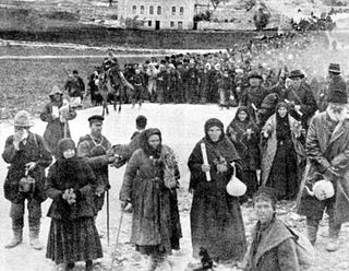 At eight o'clock according to Russian time (two in the afternoon), they began preparing for the procession with the Cross. The bishops, priests, and deacons, having dressed in all their sacred vestments, each took thirty-three unlit candles. Then from the altar, through the royal doors, were handed twelve banners, and whoever could took them. The soldiers cleared the way, and the chanters went behind the banners. From the altar through the royal doors came the deacons, priests, abbots and archimandrites, two by two, then the bishops, and behind all of them, Metropolitan Meletius. They went to the Lord's Sepulchre, and went around it three times chanting, "Angels in the heavens, O Christ our Saviour, praise Thy Resurrection with hymns; deem us also who are on earth worthy to glorify Thee with a pure heart."