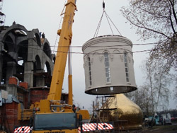 Первым в Москве православным храмом из модульных конструкций будет храм во имя святых равноапостольных Мефодия и Кирилла около театрального центра на Дубровке в Москве, где в 2002 году произошел теракт. В апреле этого года патриарх Кирилл и мэр Москвы Сергей Собянин заложили камень в его основание.