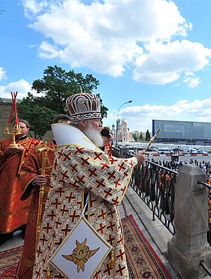 Я всех вас поздравляю с великим для нашего Отечества и для всего славянского мира праздником славянской письменности и культуры, с днем святых равноапостольных Кирилла и Мефодия. Ну, а всех тех, кто заканчивает сегодня учебные заведения, я особенно поздравляю с окончанием учебного года. И этими словами о святых равноапостольных Кирилле и Мефодии я от вcего сердца напутствую всю молодежь нашу — и России, и Украины, и Белоруссии, и Молдовы, и прочих стран, которые хранят в себе великое наследие Кирилла и Мефодия.