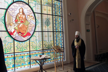 Перед освящением Большого зала митрополит Иларион совершил молебен и освящение воссозданного витража с изображением святой мученицы Цецилии — покровительницы музыкантов, установленного в фойе партера консерватори, сообщает служба коммуникации ОВЦС.