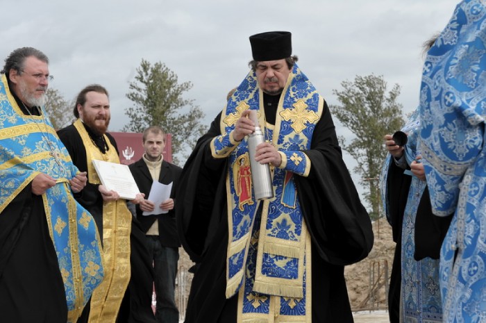 Освятил закладку викарий Санкт-Петербургской епархии епископ Петергофский Маркелл. Ему сослужили благочинные двух округов – Петроградского протоиерей Виктор Московский и Царскосельского протоиерей Геннадий Зверев, а также клирики храмов города. «Восстанавливая некогда поруганные святыни, мы будто просим прощения за то, что совершали противное нашей совести», — сказал владыка Маркелл.