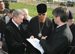 Из Строгино высокая инспекция направилась по незапланированному маршруту. Благочинный храмов Успенского округа столицы протоиерей Стефан Пристая рассказал епископу Тихону о несправедливости, которая была допущена при распределении земель, на которых должны возводиться святыни. Так, на улице Исаковского раньше были монастырские земли, стоял храм, а рядом располагалось кладбище. Участок здесь под храм сначала был отведен, но потом по необъясненным причинам исключен из программы.