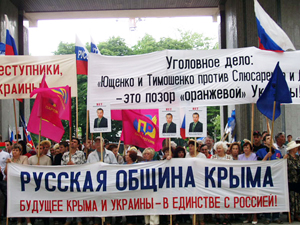 | Митинг Русской общины Крыма возле стен крымского парламента в 2005 г. |
