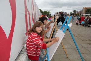 У стен кафедрального собора, который, по словам епископа Архангельского и Холмогорского Даниила, уже становится центром социальной помощи, в июле проводился конкурс детских рисунков.