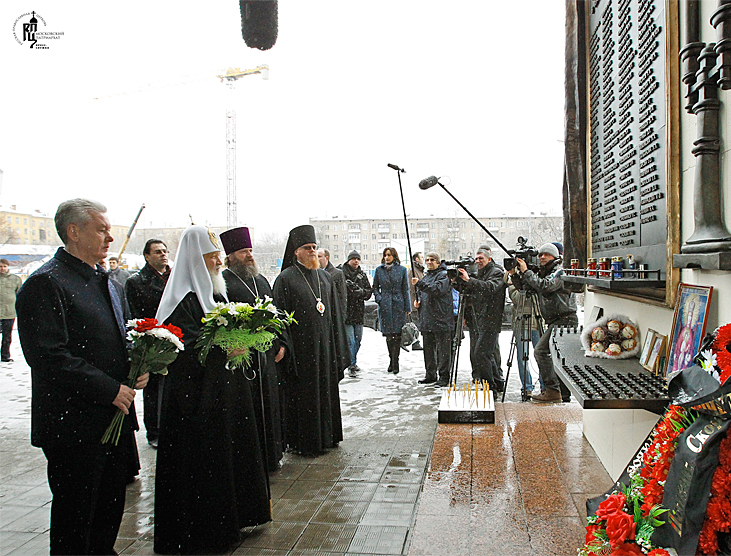 Предстоятель и мэр столицы возложили цветы к мемориальной доске с именами погибших в результате теракта. Была пропета «Вечная память», информирует Патриархия.ru.