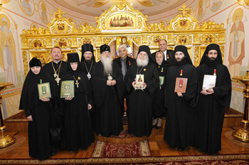 Во внимание к трудам на благо Православной Церкви Патриарший экзарх наградил игумена обители Ватопед архимандрита Ефрема, президента Центра греческой и православной культуры Фивоса Христодулидиса и президента Института преподобного Максима Грека Николаоса Гурароса орденом святителя Кирилла Туровского; настоятельницу Свято-Воскресенского Новодевичьего монастыря Санкт-Петербурга игумению Софию (Силину) — орденом преподобной Евфросинии Полоцкой; насельников обители Ватопед монаха Феодокса и иеродиакона Пахомия — медалью святителя Кирилла Туровского; члена Совета управления Центра греческой и православной культуры Екатерину Христодулидис и насельницу Свято-Воскресенского Новодевичьего монастыря послушницу Наталию — медалью преподобной Евфросинии Полоцкой.