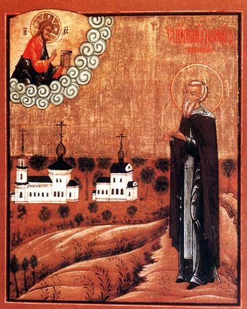 We do not know the exact time of the saint’s life. According to Church tradition, he was born in the area of Novgorod at the end of the thirteenth century. At the age of twenty-one he entered the monastery of St. Anthony in Novgorod the Great, where he received monasticism and performed various obediences for six years. Then, after leaving the monastery, he spent three years wandering until he came to a solitary place on Chelma Hill, at the mouth of the Chelma River, which empties into a small forest lake. His Life says that “this place had a hill that was not very large, but covered with berries and trees, and this hill was very beautiful, and no man ever lived here before; and St. Cyril rejoiced exceedingly in spirit and loved it greatly.” With the words, “This is my dwelling and rest unto the ages of ages, here I am glad, for the Lord has willed and shown love for my soul,” the saint resolved to remain on the tall bank of the lake and to dig a cave in the hill, where he would labor in asceticism until he built a log chapel and a small hut for a cell. He fed himself with vegetables from his own garden, and with wild herbs.