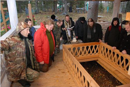 The people who live near Chelmogora today have not forgotten their saint. Every year on his commemoration day, people come from as far as Moscow, braving the cold and rural roads to serve a moleben at the site of the Chelmogora monastery. —OC.