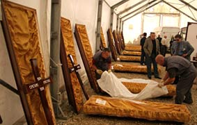 | Подготовка к передаче посмертных останков жертв террора ОАК (UCK). Мердаре. 13 октября 2006 г. |