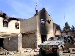 | Монастырь Девич сожжен до тла в марте 2004 г. Зона ответственности французского контингента КФОР. |