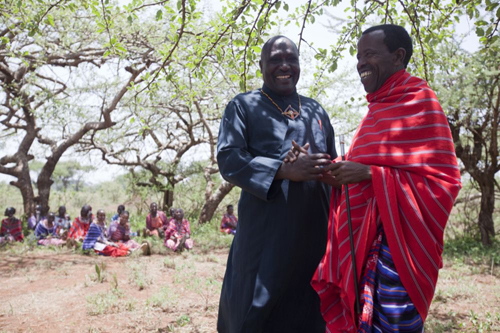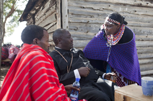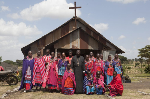 Масаи — африканское племя проживающее в саванах на юге Кении. Несмотря на развитие современной цивилизации, они практически полностью сохранили свой традиционный уклад жизни, за последнее столетие, под воздействием греческих миссионеров, многие масаи приняли православие, в то время как католицизм и протестантизм так и остались религией «белых» жителей страны. Человек в черном — кенийский священник окормляющий один из масайских приходов.