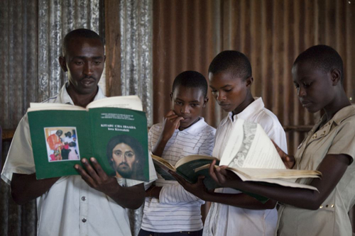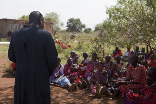 Отец Марк читает Евангелие на местных языках — на суахили, масаи и кикуйю