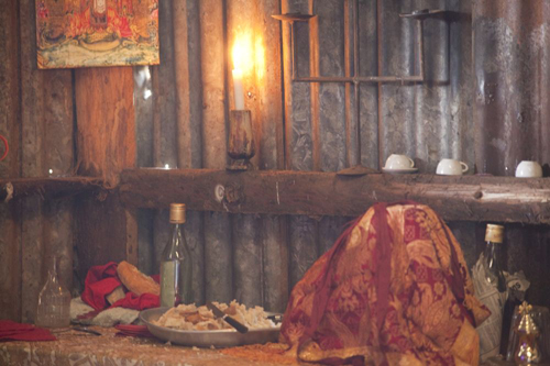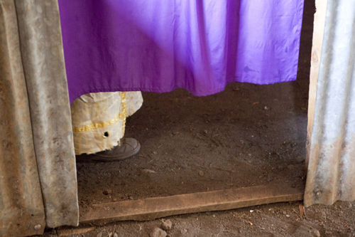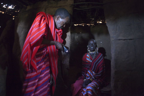 Обстановка крайне скудна. Пол в хижинах земляной. Окон нет. Еду готовят на открытом огне непосредственно на полу. Электричества никакого нет, конечно. Но обратите внимание, что старейшина подсвечивает себе путь мобильным телефоном — его заряжают в специальных киосках в городе