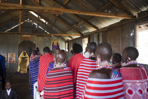Масаи выглядят несколько экстравагантно в православном храме, но слушают проповедь с большим интересом, кивают священнику, соглашаются с ним