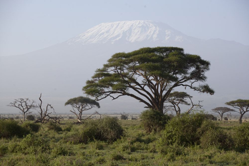 Гора Килиманджаро — самая высокая гора в Африке. Ее прекрасно видно в Кении, хотя гора расположена в соседней стране — в Танзании. Ученые не верили путешественникам, что ее вершина покрыта снегом до тех пор, пока не были сделаны первые фотографии. Невиданное дело — снег на экваторе!
