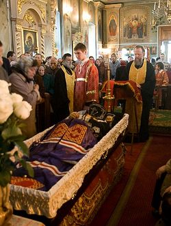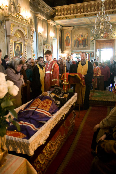 Затем гроб был перевезен в Петропавловский кафедральный собор г. Гомеля и установлен в центре храма. По окончании панихиды, которую совершил епископ Леонид в сослужении духовенства собора, началось прощание с владыкой.