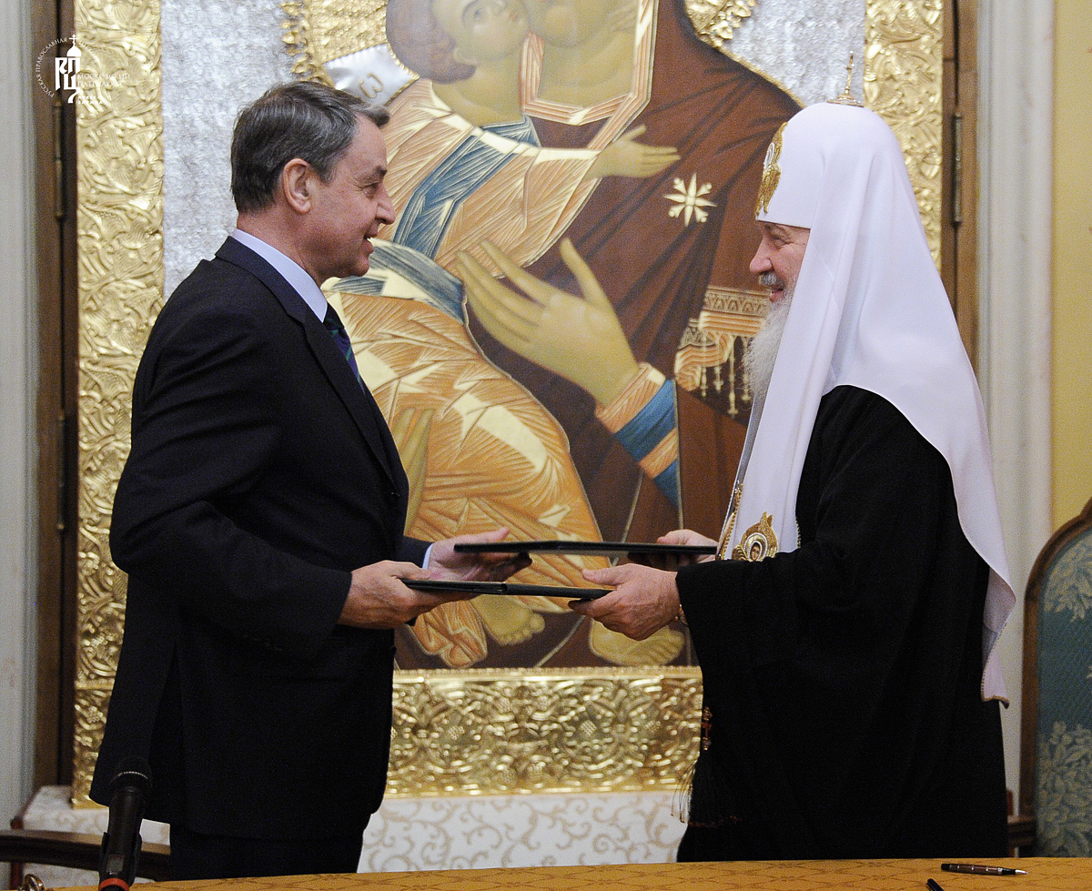 Подписи под документом поставили Святейший Патриарх Московский и всея Руси Кирилл и министр культуры РФ А.А. Авдеев.