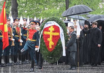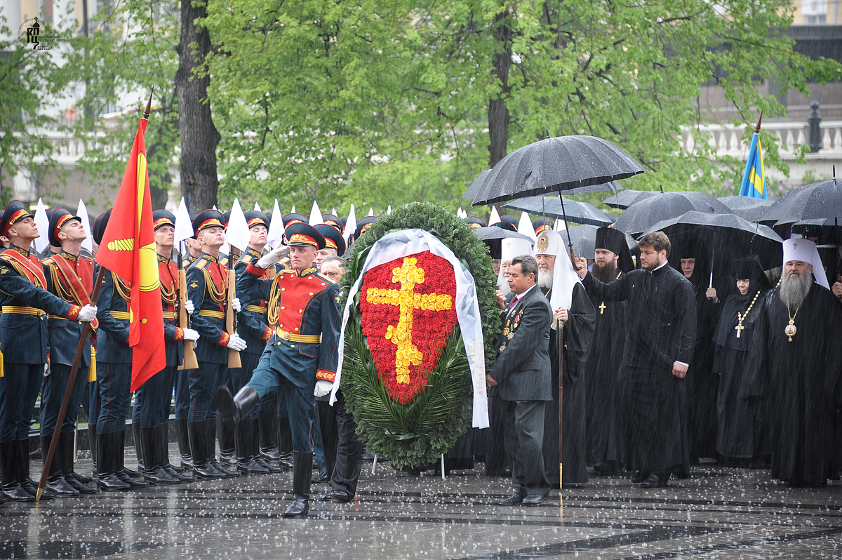 После возложения венка и исполнения военным оркестром гимна России Предстоятель и духовенство Русской Православной Церкви совершили моление «о вождех и воинах, жизни свои на поле брани за Отечество наше положивших», и, возгласив «Вечную память» павшим, пропели пасхальный тропарь «Христос Воскресе». Далее состоялся проход перед духовенством роты почетного караула военной комендатуры города Москвы.