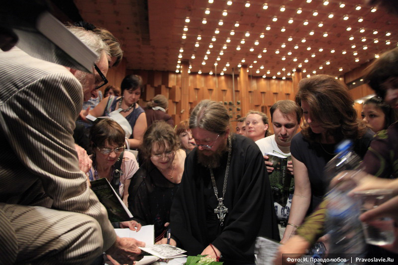 «За такую интересную встречу деньги надо брать, а не делать ее бесплатной», — гласила одна из множества записок, которые читатели книги «Несвятые святые» адресовали её автору, архимандриту Тихону (Шевкунову), на встрече в московском Доме кино.
