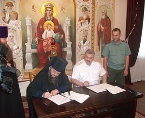Минобороны и епархия будут вести совместную деятельность по патриотическому воспитанию военнослужащих, нравственному воспитанию и духовному просвещению военнослужащих, заниматься социальной защитой военнослужащих и членов их семей и помогать реализации религиозных потребностей военнослужащих.