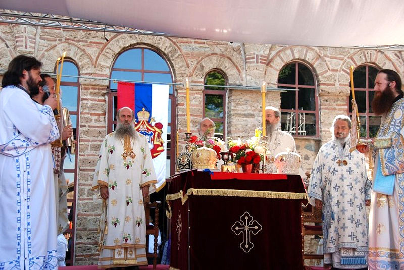 Патријарх српски Иринеј служио је данас на Видовдан Св. Литургију уз саслужење Епископа Рашко-призренског Теодосија, умировљеног Епископа Захумско-херцеговачког Атанасија и викарног Епископа Липљанског Јована, као и четрдесет свештенослужитеља из више Епархија СПЦ у препуној порти манастира Грачанице