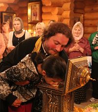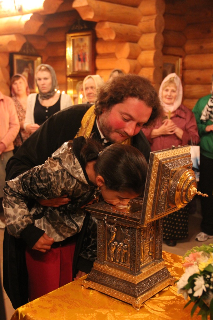 Святыню принес настоятель Спасского собора протоиерей Димитрий Россохань, встречал мощи настоятель больничной церкви иерей Александр Видяпин.