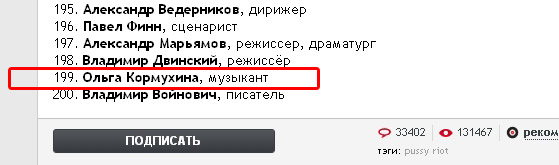 Ольга Кормухина не подписывала письмо в защиту «Pussy riot»