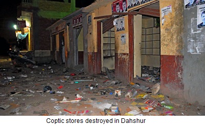 Коптский магазин, пострадавший во время беспорядков в Дахшуре. Фото: AINA