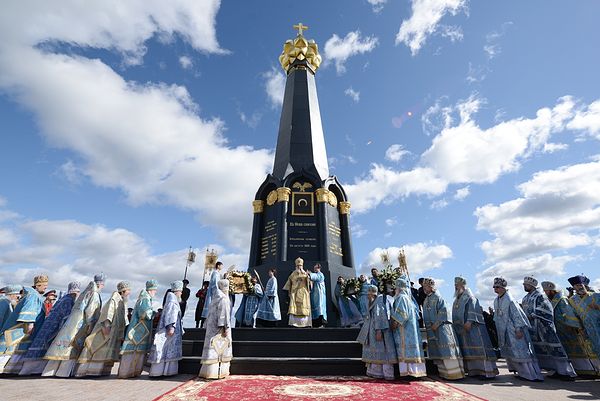 К монументу были возложены цветы от Предстоятеля Русской Церкви.