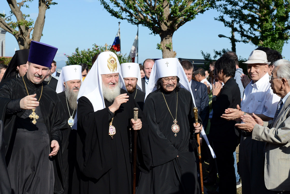 В этом году мы также воспоминаем 100-летие кончины святителя Николая Японского. Более 50 лет он трудился на этой земле, чтобы посеять семена Православия. Его апостольский труд начался с места, на котором мы стоим, с этого храма в честь Воскресения Христова. Здесь были рукоположены первые японские священнослужители, здесь впервые прозвучали православные песнопения и молитвословия на японском языке, здесь впервые японцы и русские поняли, что Православие — это вера, которая принадлежит не какому-то одному или нескольким народам, но усваивается во всем мире.