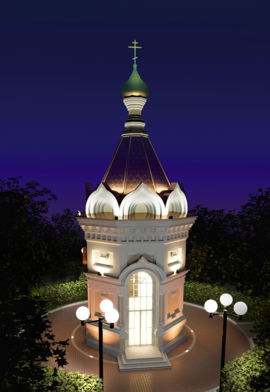 Предполагается, что храм будет представлять собой восьмигранник диаметром около шести метров, высотой (с учетом креста) - 17,3 метров. В мэрии отмечают, что при разработке проекта архитекторы опирались "на лучшие образцы русской храмовой архитектуры 19 века". Рытье котлована будет производиться с участием археологов, так как, по данным историков, раньше на территории сквера был расположен женский монастырь, снесенный еще по указанию Екатерины II.