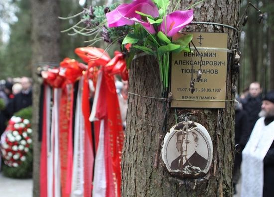После панихид на местах массовых расстрелов и захоронений - Левашовской пустоши и Ржевском полигоне - состоялось чтение имен жертв тоталитарного режима. Вечером оно продолжилось во дворе Фонтанного Дома, где жила Анна Ахматова - автор знаменитого "Реквиема", жена расстрелянного Николая Гумилева и мать пострадавшего от репрессий Льва Гумилева.
