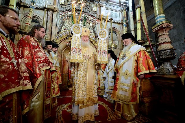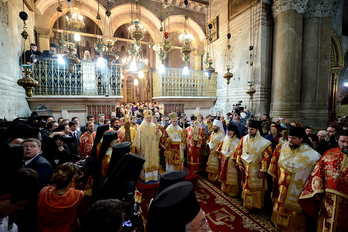 Посещая в эти дни Матерь Церквей, Церковь Святого Града Иерусалима, мы воздаем должное ее многовековому подвигу непрестанной молитвы у величайших святынь христианского мира и их ревностного хранения для всех христиан. Великое множество паломников, стекающихся сюда со всех концов света — это свидетельство о том, что весть о Воскресении Христовом, исшедшая из Иерусалима и пронесенная святыми апостолами по всей земле, не угасла и жива и по сей день. Вера во святое Христово Воскресение приносит свой плод во всем мире, в том числе и в России, Украине, Беларуси и других странах Святой Руси, по слову Господню: "Блаженны не видевшие и уверовавшие" (Ин. 20:29).