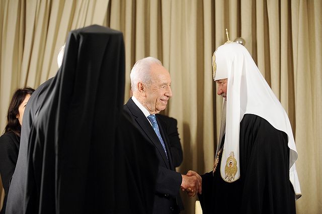 | Шимон Перес отметил, что рад приветствовать Святейшего Патриарха Кирилла как духовного лидера миллионов людей |