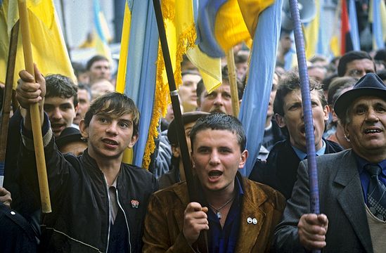 | Участники митинга у здания Верховного Совета Украины против нового Союзного договора. Киев, 1 октября 1990 года. Фото Игоря Костина / РИА Новости |