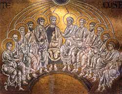 Сам Господь наш Иисус Христос перед Вознесением заповедал своим ученикам оставаться в Иерусалиме, где и произошло сошествие на них Святого Духа, и первая христианская Пятидесятница совпала с Пятидесятницей еврейской. В Деяниях 2:5 сказано: "В Иерусалиме же находились иудеи, люди набожные, из всякаго народа под небесами". Т.е. в этот город, предназначенный стать центром, откуда лучи евангельского света должны были озарить всю вселенную, собралась, по случаю праздника, реально многоязычная толпа: это и богомольцы-евреи рассеяния, потерявшие свой язык и говорившие на языках народов, в чьих землях они осели, и прозелиты-чужеземцы, принявшие иудейскую веру, и , как замечает Иоанн Златоуст в "Беседах на деяния апостольские", "явились сюда и многие из язычников".Известно что во времена пришествия Христа многие язычники, проявляя интерес к божественной истине, сокрытой в Ветхом Завете, приходили в великие праздники в Иерусалим на поклонение и даже допускались во внешний двор храма. И вся эта пестрая в языковом отношении толпа была привлечена "шумом с неба" и собралась у дома, где произошло сошествие Святого Духа на апостолов, и, как написано в Деяниях 2:6, "каждый слышал их говорящих его наречием","а иные, насмехаясь, говорили: они напились сладкого вина (2:13). Есть ли здесь противоречие? Думается, что нет. Представьте: огромная толпа, всеобщее смятение, взволнованные апостолы, по вдохновению Святого Духа говорящие на неизвестных им языках. Одни удивляются тайне Божией, другие, может быть не расслышавшие в этом общем смятении своего языка, пытаются объяснить чудо по своему разумению - каждому по вере. Не повторяется ли это каждый раз, когда происходит чудо - и по золе Божией опровергаются наши представления о законах природы? Нет сомнения, что именно святоотеческая традиция понимания глоссолалии точно соответствует описанию в Деяниях, хотя, безусловно, много остается вопросов, на которые ответов нет. Понимали ли апостолы то, что говорили по наитию Святого Духа? Было ли это чудо говорения или слышания, т.е. апостолы говорили на одном, родном своем языке, а собравшийся народ слышал их каждый на своем наречии? Таким вопросом задавался уже св. Григорий Богослов, но склонялся к первому толкованию. В одних ли формах проявлялась глоссолалия апостолов и коринфских христиан? Святоотеческая традиция склонна считать эти явления одной природы, хотя, если вчитаться в I Коринфянам можно увидеть некоторые новые черты. Апостол говорит, что одни одарены "даром языков", другие - даром "истолкования языков" (I Кор. 12:10); "если кто говорит на незнакомом языке, говорите двое, или много, трое, и то порознь, а один изъясняй" (14:27); "кто говорит на незнакомом языке, тот говорит не людям, а Богу, потому что никто не понимает его, он тайны говорит духом" (14:2). Можно предположить, что дар говорения на незнакомом языке в общине одноязычной становится лишенным внутреннего смысла и требует помощи для восприятия. Возможно, возвращаясь к вопросу св. Григория Богослова о чуде говорения или слышания, чудо Пятидесятницы имело и ту и другую форму, а позднее у коринфян проявилась двояко - дар говорения и дар истолкования. Практика одновременного говорения нескольких человек сразу еще больше осложняло, ситуацию и вносила элемент беспорядочности в собрания первых христиан. Если к III в. глоссолал