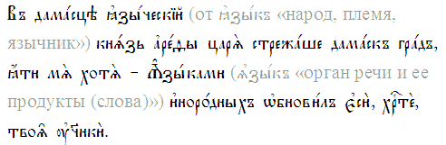 Активное использование в церковнославянском языке разнообразных графических средств для расподобления грамматических форм и преодоления лексической омонимии служит несомненным свидетельством того, что орфография таит в себе богатейшие ресурсы и что ее принципы на разных этапах исторического развития языка могут иметь разный удельный вес.