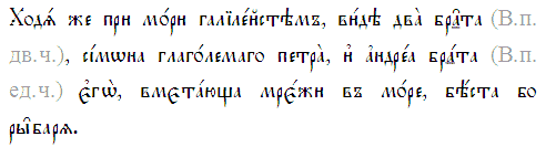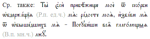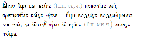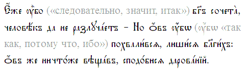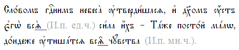 Если обратиться к омоформам, то можно обнаружить, что в церковнославянской орфографии ни одна из них не остается без графического маркирования. Оно, в целом ряде случаев способствуя адекватному пониманию смысла текстов, охватывает все самостоятельные части и все формоизменительные типы.