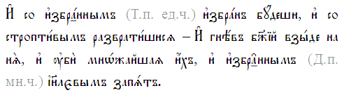 Наконец, церковнославянский язык не оставляет шансов на ошибочное определение таких частей речи, как краткое прилагательное, страдательное причастие среднего рода и наречие, побуждая писать их с конечными