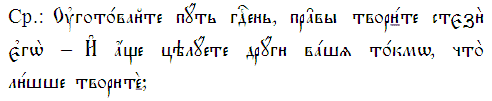 В отличие от русского языка, где принцип орфографического расподобления весьма ограничен, церковнославянский язык предлагает множество правописных дифференциаторов, которые охватывают и семантические, и в еще большем объеме грамматические различия.
