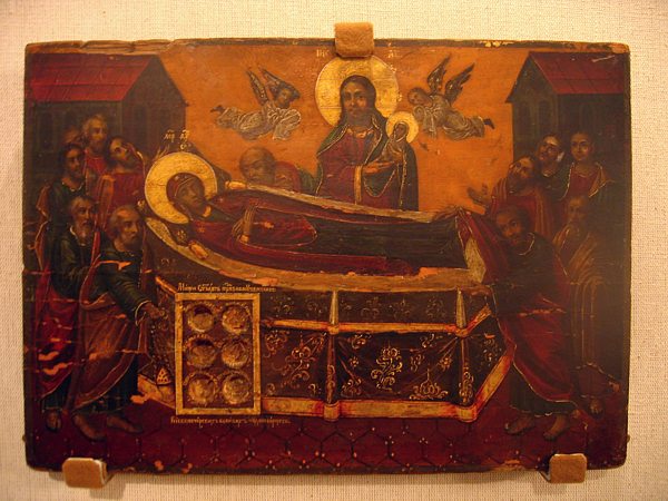 На выставке представлены различные списки с этой иконы (XVII–XIX вв.), а также новые иконографии (XVIII в.), которые создавались в Средней Руси. Две иконы Успения Богоматери были написаны в XIX веке в мастерской Киево-Печерской лавры и предназначались для паломников. Одна из них – с мощевиком, в котором ранее находились мощи печерских святых.