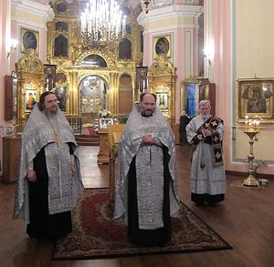 Поминали раба Божия Феодора и за богослужением в соборе Владимирской иконы Божией Матери, прихожанином которого он был в последние годы жизни, когда снимал квартиру на углу Ямской улицы и Кузнечного переулка. Сейчас здесь находится мемориальный музей. Из окна кабинета писателя была видна его любимая церковь.