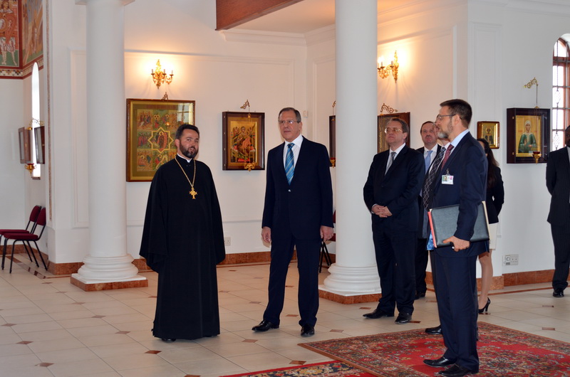 Глава российского МИД оставил памятную запись в книге почетных гостей прихода. На память о посещении единственного русского храма в субэкваториальной Африке от лица всех прихожан священник Даниил Луговой преподнес министру искусно расписанное страусиное яйцо с изображением иконы Святой Троицы и буклет, посвященный истории храма.