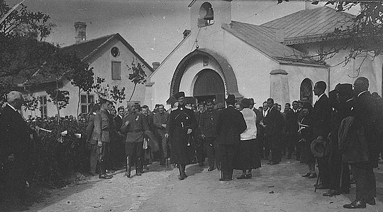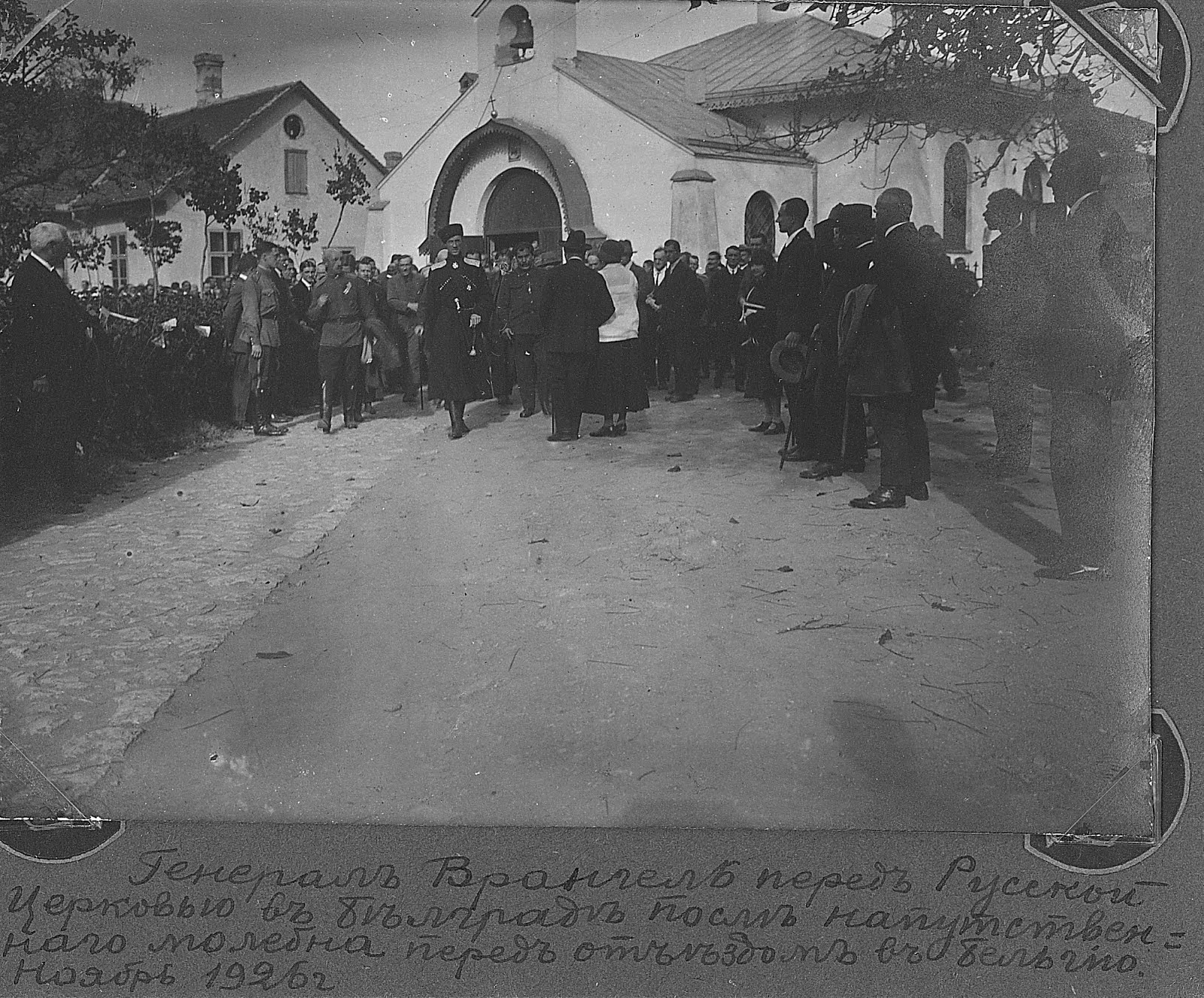 | Генерал Врангель перед русской церковью в 1926 г. |