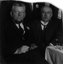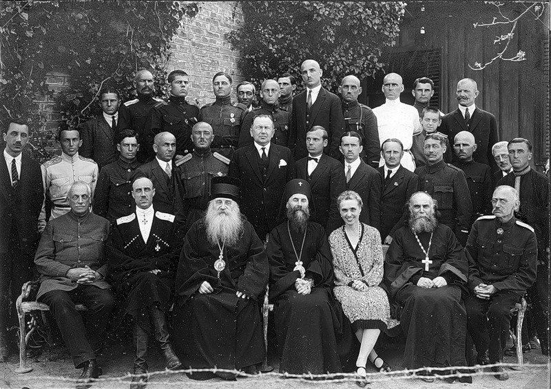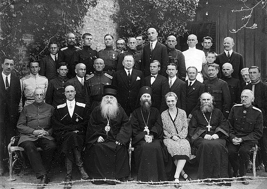 | Группа русских эмигрантов. Второй слева - генерал Врангель, третий слева - Митрополит Антоний (Храповицкий) |