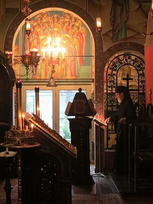 – В 7 часов утра мы служим утреню и литургию, в полдень – часы, вечером – девятый час и вечерню. Все богослужения открыты для прихожан, кроме монашеского вечернего богослужения в 9 часов вечера.