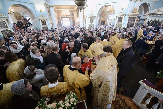 Проповедь перед Причастием произнес священник Феодор Яновский, клирик храма Успения Пресвятой Богородицы в Косино.