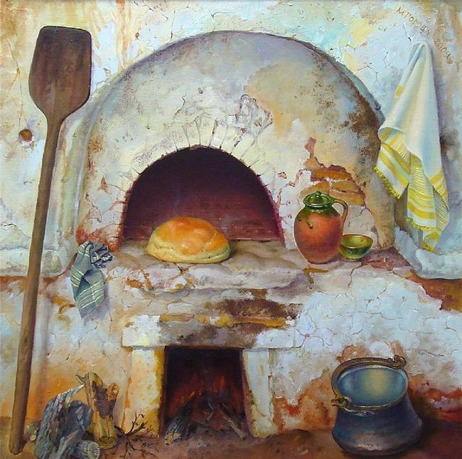 Рано утром бабушка топила печь, выкатывала тесто, готовила завтрак, а потом выпекала три хлеба: маленький пшеничный для двухлетнего Сережи, маленький ржаной делила на две части – одну побольше укладывала в туесок на обед сыну в поле, другую на обед невестке, добавляла туда по паре картофелин и по головке лука.
